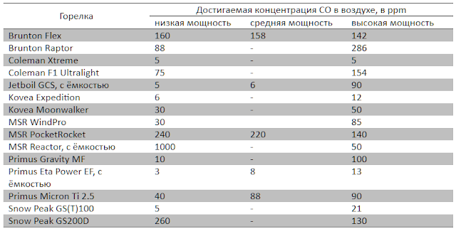 - основной источник раннего охлаждения пламени — слишком низко расположенная ёмкость для готовки (в одном из тестов увеличение клиренса всего на 5 мм сократило выделение CO в два раза);