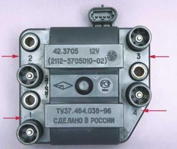 1. После того как модуль зажигания будет установлен, посмотрите на его поверхность, видите там изображены цифры: 1, 2, 3, 4. Так вот, эти цифры обозначают номера соответствующих цилиндров.